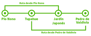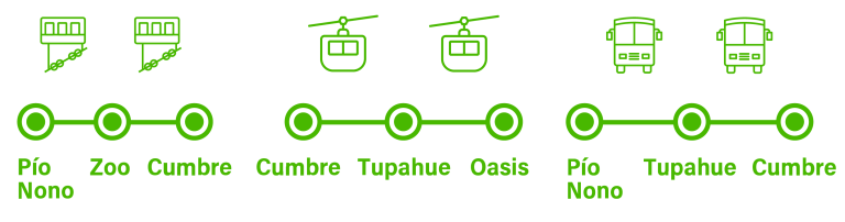 Desde esta estación inicial, se pueden abordar los Buses que salen cada 15 minutos, con paradas en estación Tupahue y Cumbre, estaciones donde también se puede combinar con el Teleférico de Santiago.