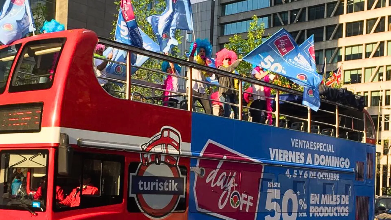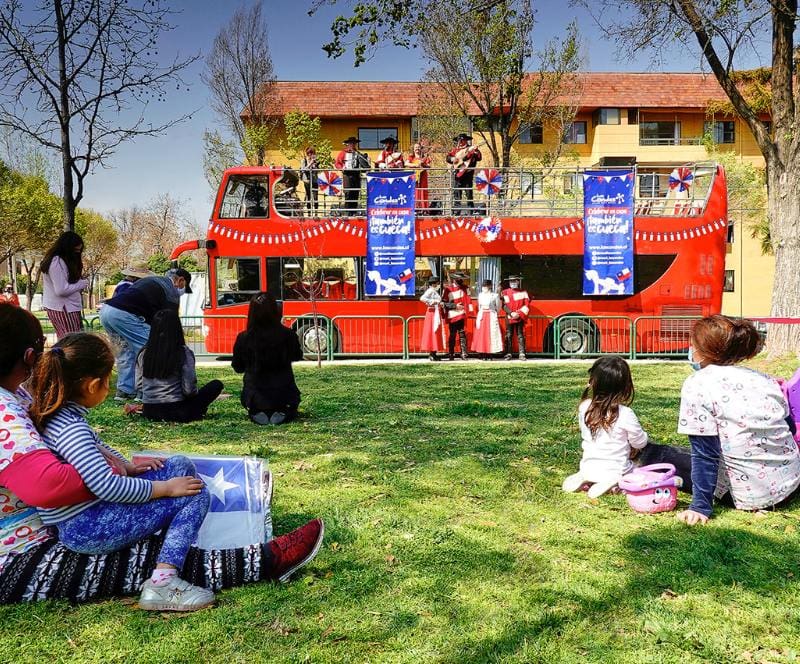 ¿Necesitas un escenario rápido, fácil y versátil? Nuestros buses son personalizados a tu medida para tus eventos en vivo, con escenario en el techo de los buses Hop On – Hop Off. Trabajamos en conjunto para lograr un escenario diseñado para lograr tus objetivos, con opción de escenario estático o en movimiento por las calles de Santiago. Destacamos por la alta calidad de eventos en vivo durante todo el año, con diferentes temáticas, como musicales, eventos deportivos, fondas y más.